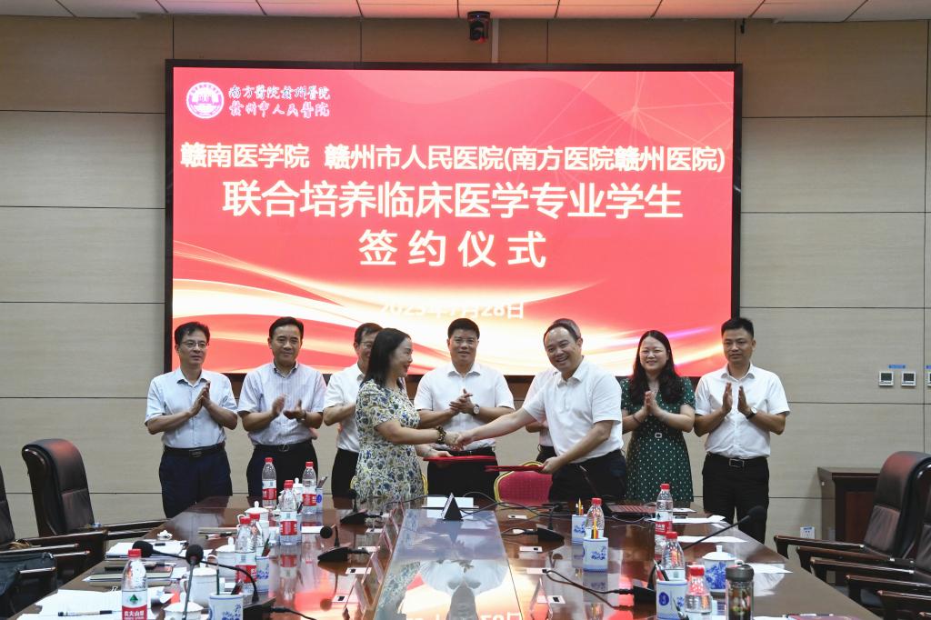 7月28日下午,学校党委委员、副校长盛瑶环带队前往赣州市人民医院洽谈联合培养临床医学专业本科生工作。赣州市政协副主席、赣州市人民医院党委书记刘春文出席座谈会,党委副书记、院长戴辉主持会议。