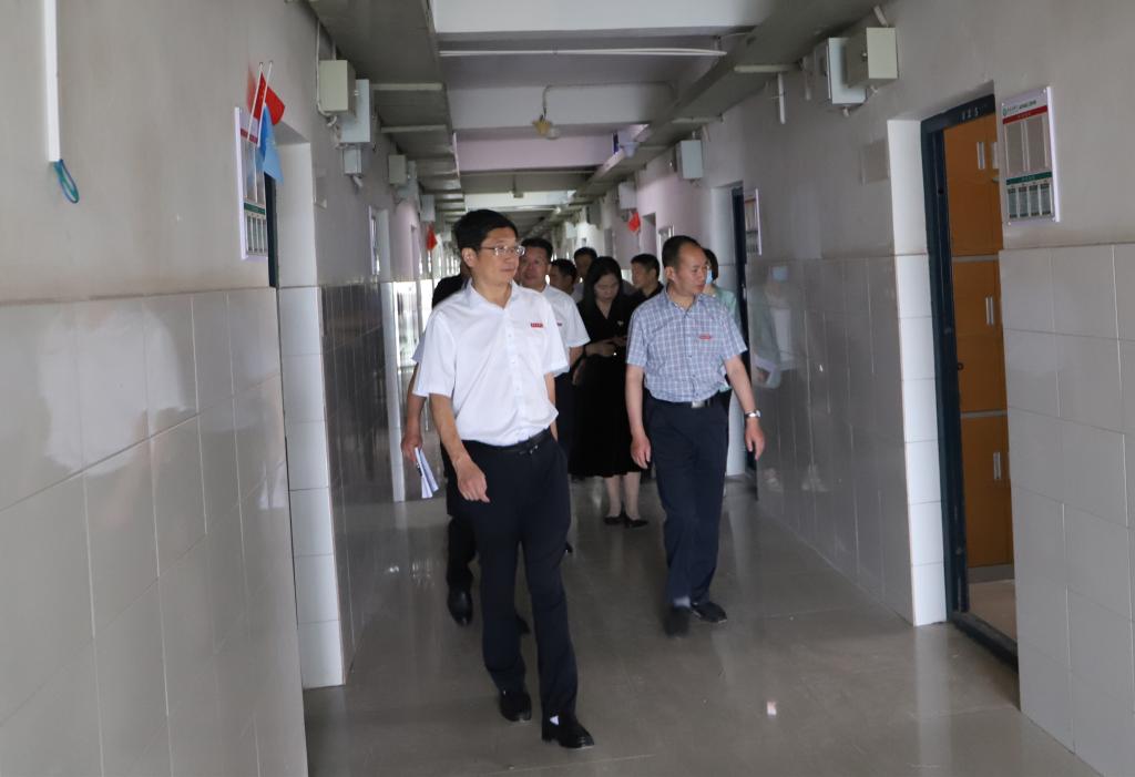 张小康一行来到学生宿舍1栋-6栋,听取宿舍改造有关情况汇报,详细了解宿舍改造进展情况,仔细查看各楼栋和寝室新改造安装的设施设备,以及宿舍消防、安防、值班室建设等,并与已到学校的学生亲切交谈。