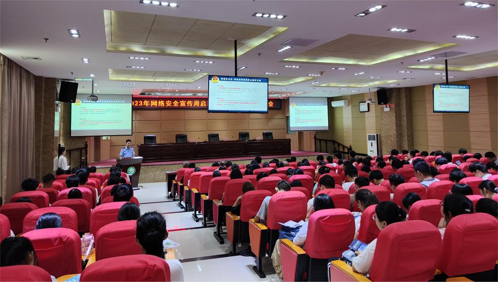 9月14日下午,赣州市公安局蓉江新区分局网安大队魏芳宏与杭州安恒信息技术股份有限公司易清桃等到我校黄金校区开展2023年国家网络安全宣传周活动启动仪式暨网络安全意识培训班,学校党委委员、副校长叶军明出席活动。学校信息技术与网络管理中心全体人员、各部门(学院)业务系统管理员及各学院学生代表约200人参加培训。