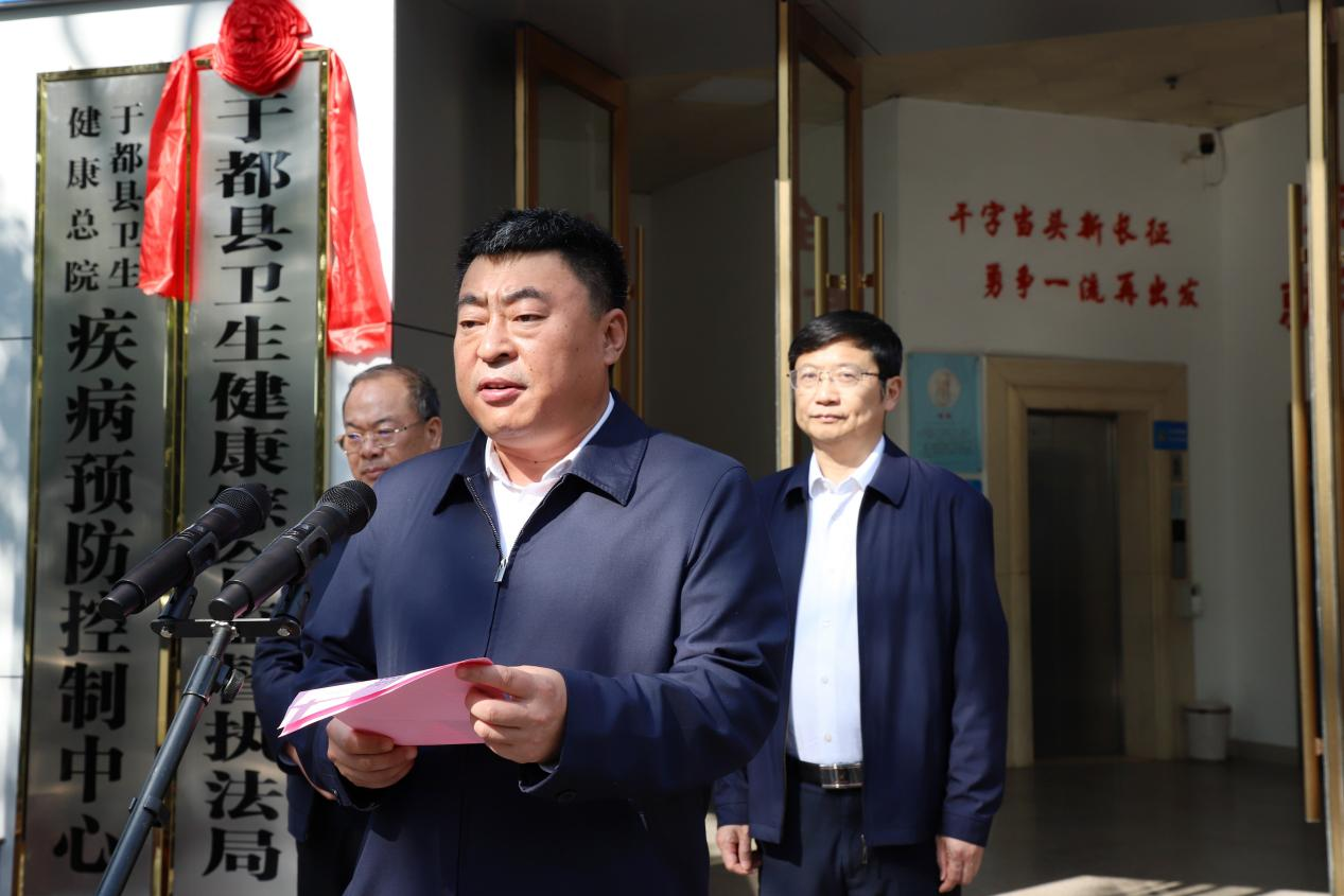 张小康、郝敏哲共同为赣南医科大学附属于都公共卫生中心揭牌。