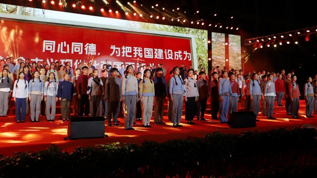 “征途漫漫,复兴有我!”机关党委呈现的压轴大合唱《走向复兴》,将晚会推向了高潮。大家用歌声表明心志,表示要更加紧密地团结在以习近平同志为核心的党中央周围,深入学习贯彻党的二十大精神和习近平总书记考察江西重要讲话精神,大力实施学校高质量发展三年行动计划,不断开创学校发展的新局面。