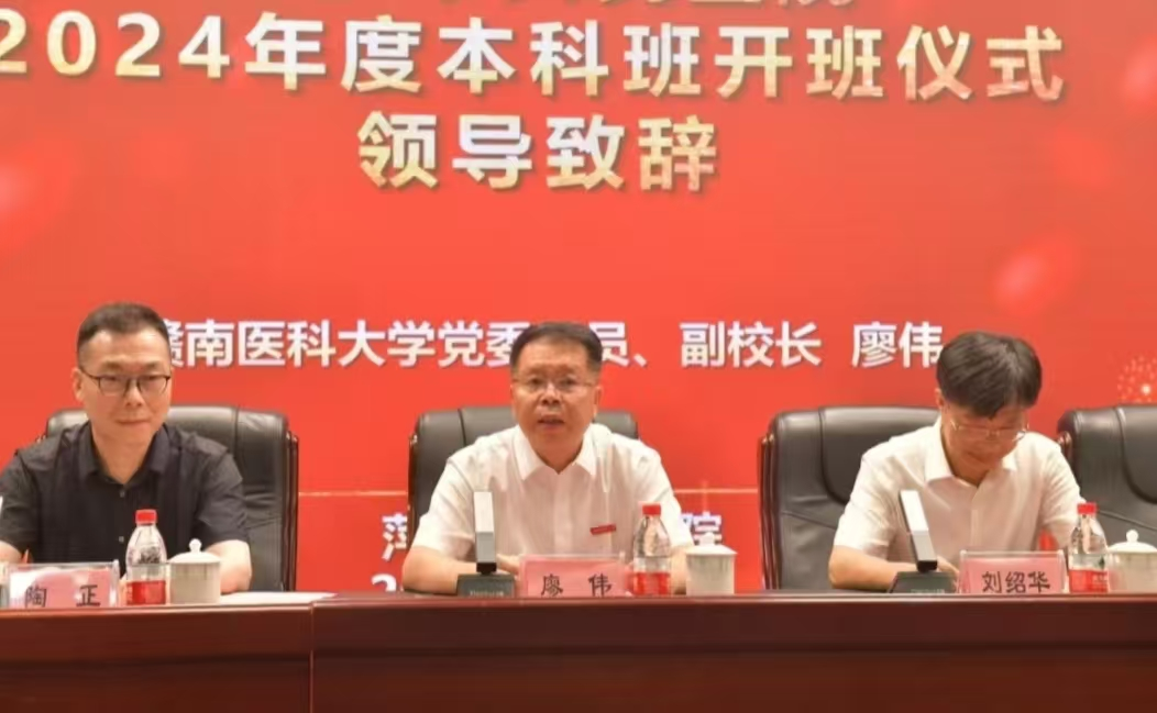 廖伟勉励同学们:一要始终坚定理想、精医济世,秉持家国情怀。要心怀“国之大者”,将家国情怀融入精医仁心,把个人前途融入国家需要的星辰大海,始终与国家发展、民族命运同向同行,去谱写红医精神的崭新篇章。二要始终追求卓越、勤奋务实,矢志求是求新。要牢记“健康所系、性命相托”的铮铮誓言,坚持迎难而上、知难而进,永远保持心中的热忱与坚持,把求是求新作为人生的常态,以积极的心态应对各类新鲜事物,以扎实的学习力、思考力、生存力跨越高山湖海,在持续创新中追逐梦想,在积极进取中实现人生追求。三要始终立德立行、仁心仁术,坚守医学初心。要笃定自信,勇毅奋进,努力弘扬“敬佑生命、救死扶伤、甘于奉献、大爱无疆”的医者精神和“政治坚定、技术优良、无私奉献、救死扶伤、艰苦奋斗、勇于开创”的红医精神,展现良好的医学生职业素养和新时代医学生形象。四要谨记安全防线、遵规守纪,健康阳光成长。要适应新的教学和学习、生活环境,遵守医院规章制度,服从医院各项安排,提高反电信诈骗意识,注意消防、交通安全,保护好人身财产安全,以饱满的热情投入到学习和生活中。
