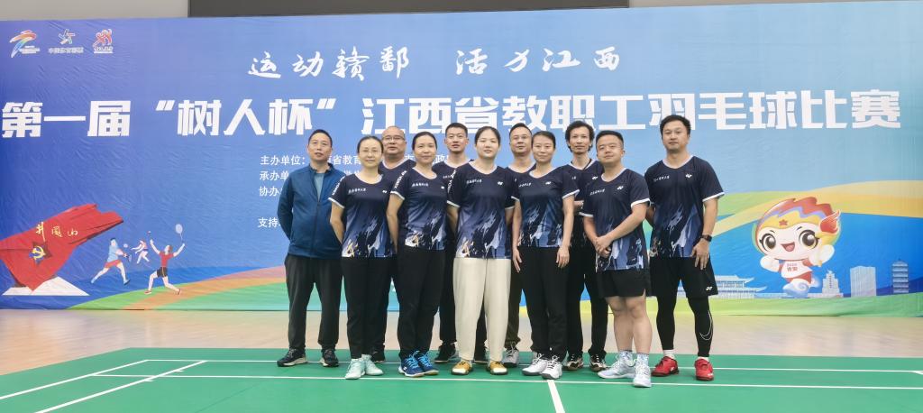 10月19-23日,第一届“树人杯”江西省教职工羽毛球比赛在吉安市全民健身中心举行,我校代表队力克多支强队,勇夺本科组混合团体第一名。我校教师陈菲、陈敏分获女子单打第五、第六名,运动康复(体育)教研室副主任黄健获评优秀教练员,运动康复(体育)教研室教师葛雪珍获评体育道德风尚奖。