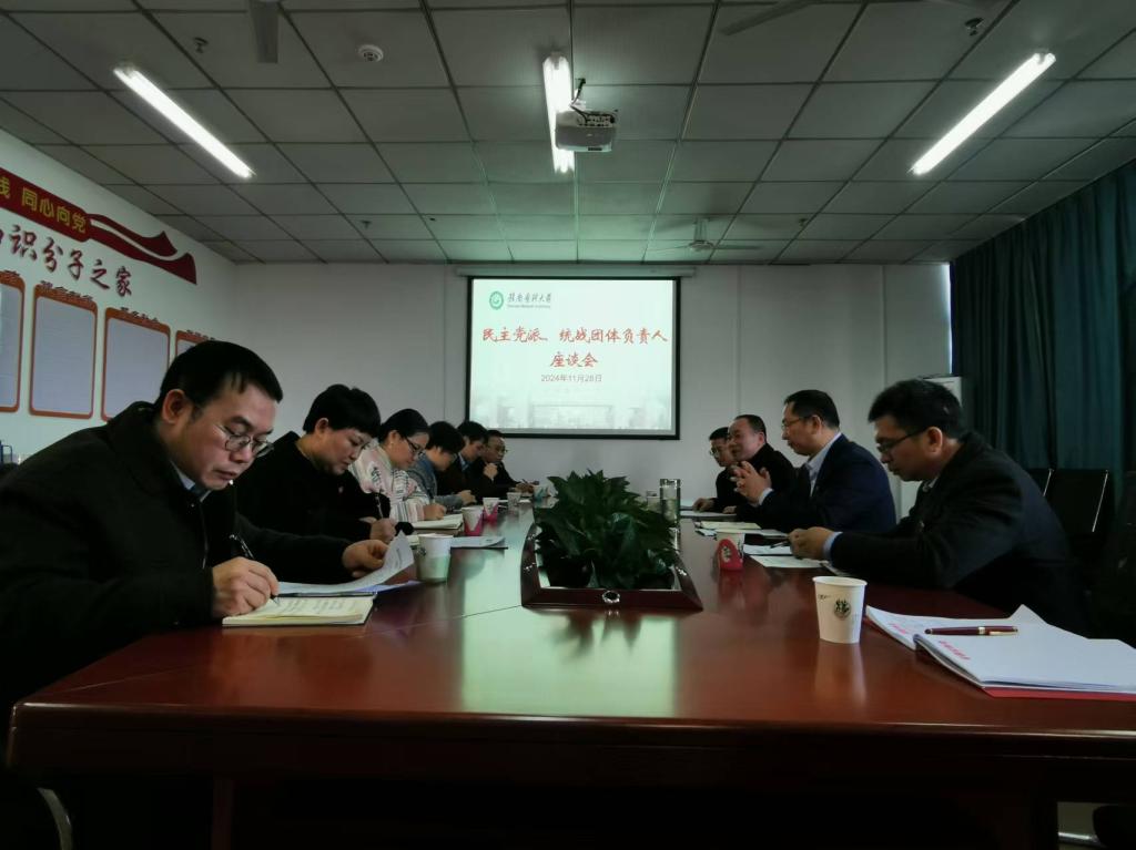 11月28日下午,我校召开民主党派、统战团体负责人会议。学校党委副书记黄瑞忠出席会议并讲话,党委委员、统战部部长赖传景主持会议。