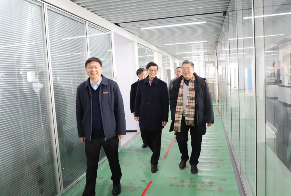 郑宏一行首先来到还在紧锣密鼓建设中的学校科技大楼实地考察,详细了解科技大楼建设进展、人员配置、设备配备等情况。