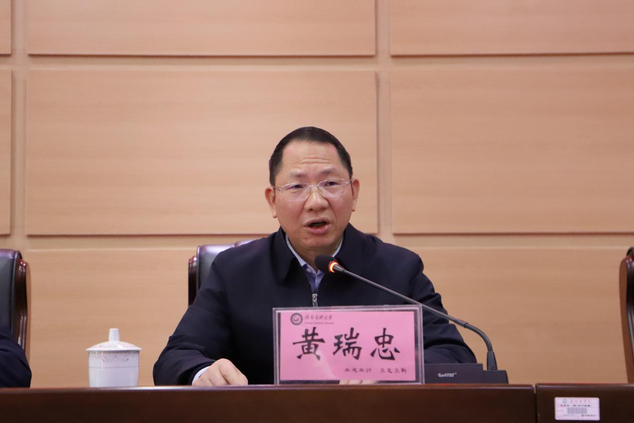 黄瑞忠在主持中指出,今年是“十四五”规划收官之年,也是“十五五”规划蓄势之年、学校申报博士学位授予单位的关键之年,必须更加强化党的领导、更加强化严的基调、更加强化压力传导,更好发挥全面从严治党政治引领和政治保障作用,推动学校各项事业高质量发展不断向前迈进。并就贯彻落实好本次会议精神,要求各部门各单位要聚焦会议精神,及时传达部署。要聚焦党内监督,压实主体责任。要聚焦正风肃纪,严格监督执纪。要扎实开展深入贯彻中央八项规定精神学习教育,精准有效运用监督执纪“四种形态”,把思想政治工作贯穿监督执纪全过程。