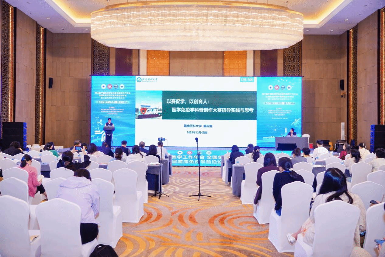 基础医学院青年教师赖苏雯在会上作题为《以赛促学,以创育人:医学免疫学科普创作大赛指导实践与思考》的专题报告,系统介绍了教研室在第二课堂及学生科普活动方面的相关工作。