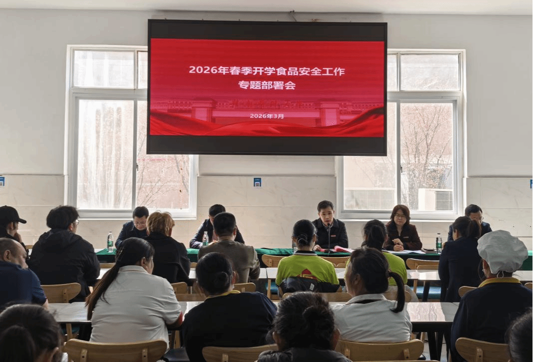 刘志平充分肯定了上一学期后勤保障工作及食堂从业人员的辛勤付出,感谢大家为校园食品安全筑牢防线。他强调,要守牢安全底线,严格落实“日管控、周排查、月调度”机制,严把食材采购、存储、加工等全链条关口,规范“明厨亮灶”管理,杜绝安全隐患;要优化服务供给,结合春季时令丰富菜品,兼顾多元口味与特殊需求,稳定餐品价格,畅通师生反馈渠道;要健全监管体系,强化多部门协同,严肃问责追责,织密食品安全保障网;四是压实岗位责任,推动责任层层落实,引导全体从业人员强化担当、严守规范。