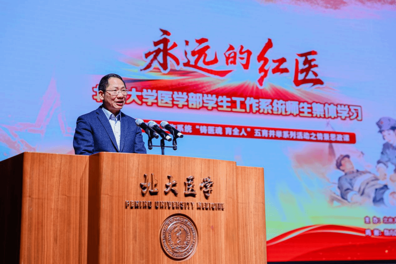 我校党委副书记黄瑞忠代表学校对北京大学医学部为此次活动提供的宝贵平台和大力支持表示衷心感谢。他指出,北京大学医学部韩济生院士是我校名誉校长,两校早已结下不解之缘,此次相聚更是情谊的延续、交流的深化。他强调,作为扎根于赣南红医精神发源地的高等医学学府,挖掘、研究、传承红医精神是我校与生俱来的使命,该课程是我校依托中央苏区红色卫生资源,构建特色育人体系的重要成果。此次将“永远的红医”情景思政课带到中国现代高等医学教育的发祥地,旨在促进红医精神的传播与交流,共同探讨新时代医学人才的铸魂育人之路。