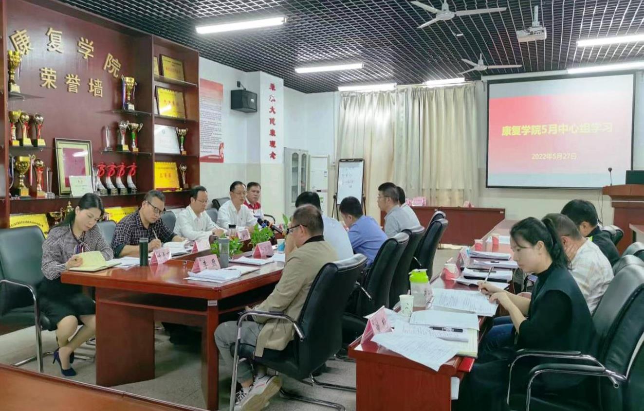 5月27日上午,康复学院组织开展5月份党委理论学习中心组学习,班子成员、支部书记及科室负责人参会,学院党委书记曾新华主持。第二临床医学院党委书记钟秋明携第二临床医学院(第二附属医院)中心组成员列席旁听。