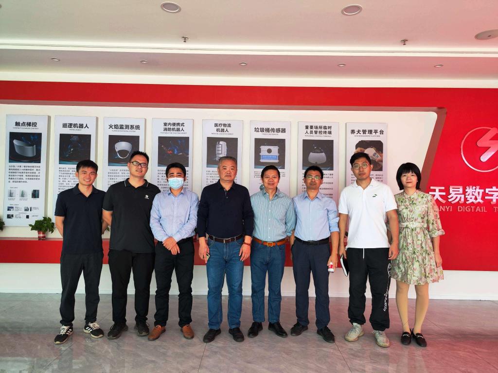 在江西天易数字技术有限公司,天易数字总经理彭荣安介绍了公司发展历程和产品研发基本情况;钟海舰介绍了学院特色和产业学院建设情况。双方围绕科研创新、产业学院建设合作、毕业生就业实习、创新创业工作及项目运营管理经验等方面开展交流。