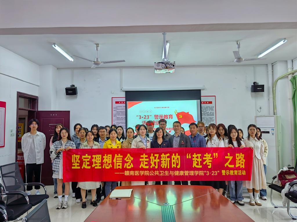 3月23日-3月25日,公共卫生与健康管理学院组织开展了以“坚定理想信念,走好新的‘赶考’之路”为主题的“3·23”警示教育系列活动,该院党委书记范启兰、院长黄诚、党委副书记邱伟、全体教工党支部党员及学生党支部党员参加。