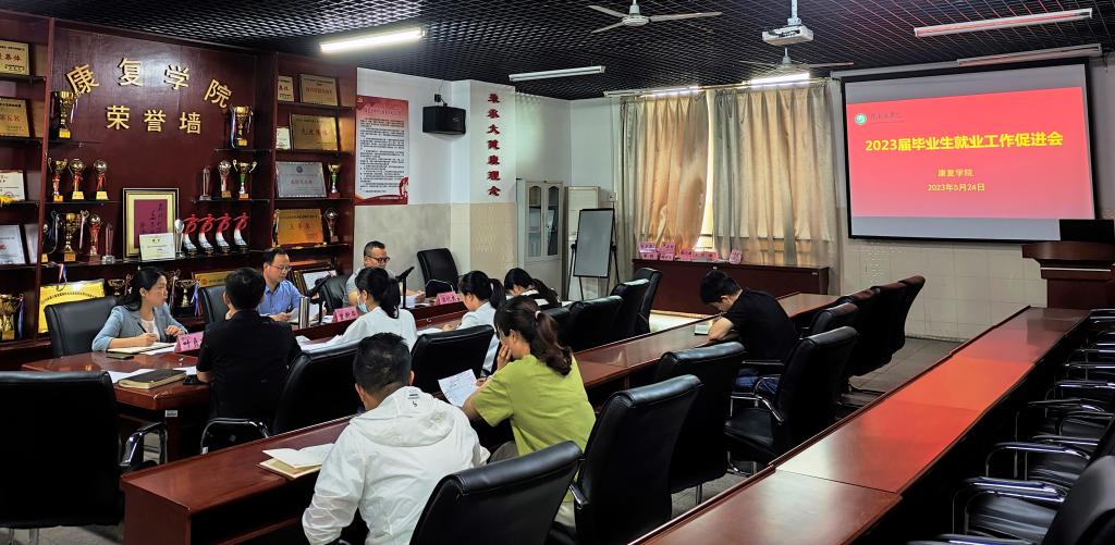 5月24日,康复学院在黄金校区召开2023届毕业生就业工作推进会。对今年就业工作进行研讨和布置,学院党委书记曾新华、学院院长温优良以及学院全体辅导员、毕业班班主任参会,学院党委副书记叶贞丽主持。