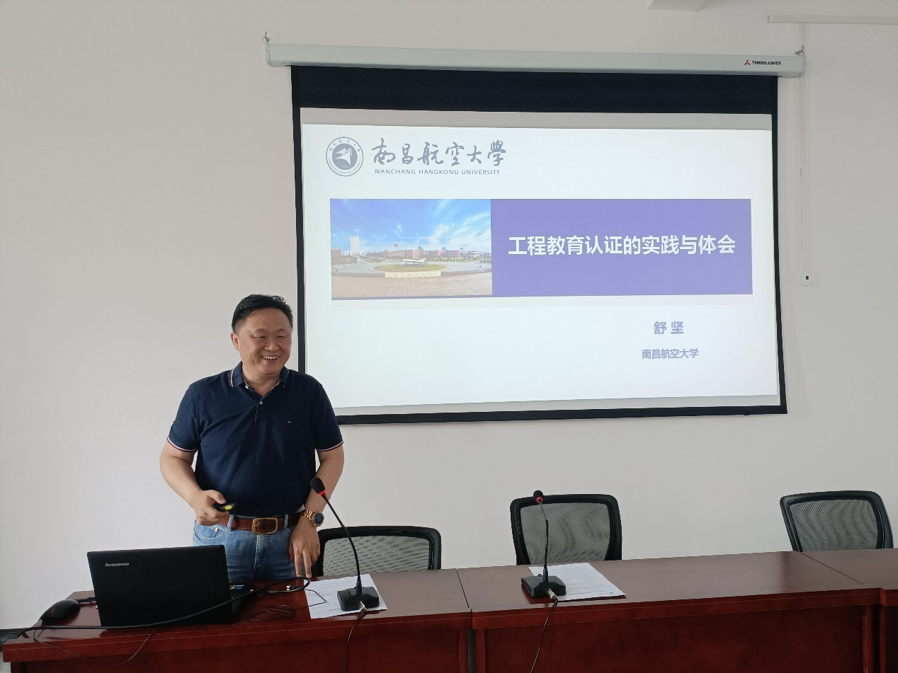 讲座中,舒坚教授从专业认证理念与体系逻辑、培养目标、毕业要求、课程目标以及课程评价5个方面深入浅出地阐释了如何推动工程教育认证的开展和形成有效的持续改进机制。舒坚教授还分享了南昌航空大学开展工程教育认证的经验。
