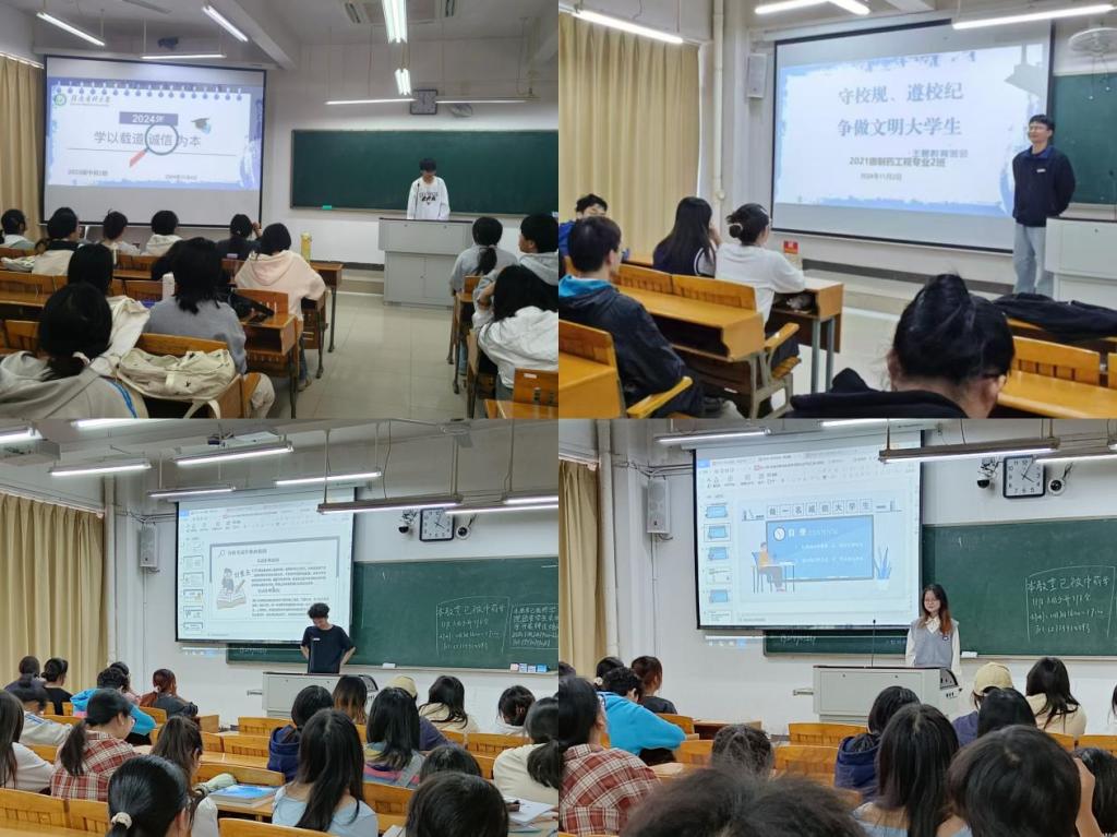 同时,再次组织全体同学学习学校规章制度,重点就学籍管理、毕业和学位授予、综合素质测评及各类评奖评优、违纪处分与申诉、考试违纪作弊等相关规定及办法展开学习,加强学生思想教育和行为管理,提高学生法纪意识,规范文明行为,助推和谐有序、积极向上的优良校风学风建设。