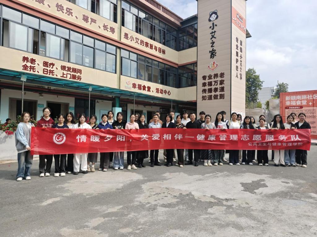 11月10日,公共卫生与健康管理学院到赣州市小艾之家新赣南路社区养老中心开展“情暖夕阳·关爱相伴”健康管理志愿服务活动。公共卫生与健康管理学院教工第二党支部、社会医学与卫生事业管理教研室教师及管理专业学生参加。