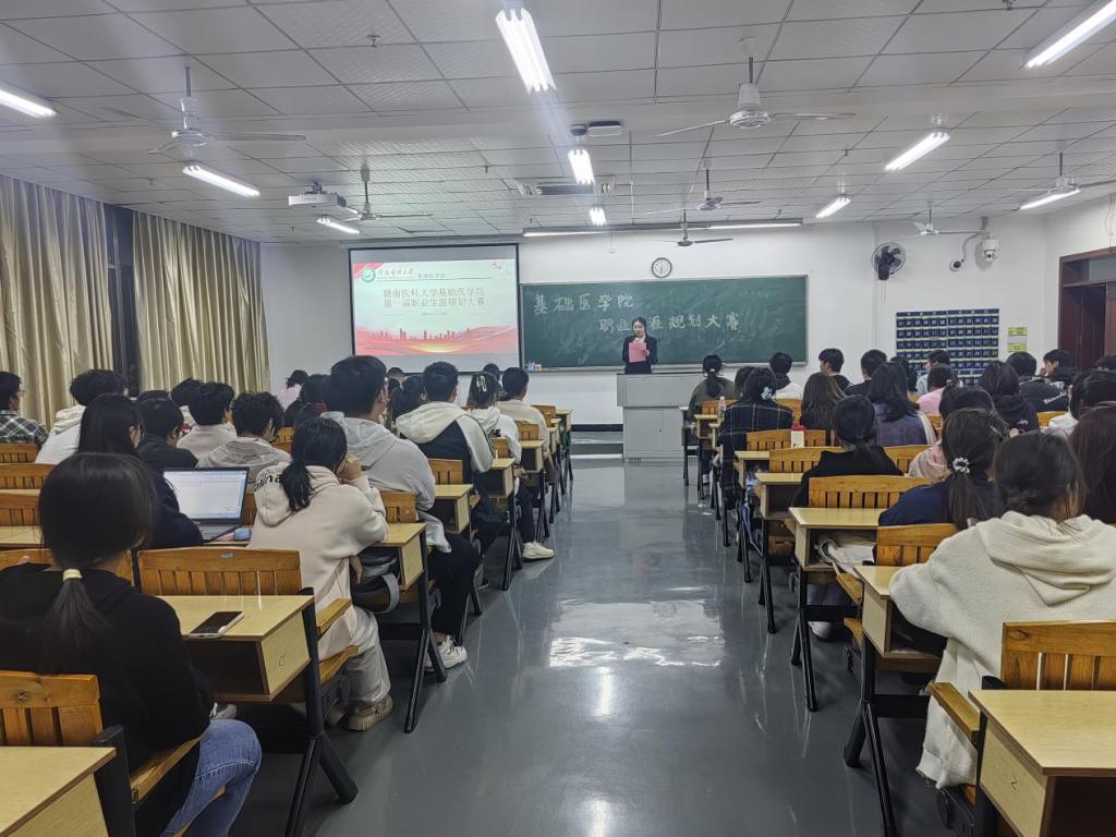 11月28日晚,基础医学院第一届大学生职业规划大赛决赛在黄金校区举行。基础医学院党委副书记刘志春,赣南医科大学司法鉴定研究所所长汪家文,生物技术教研室主任甘滔、团委书记李鑫担任本次大赛评委,基础医学院学生干部、学生代表共计200余人参加本次活动。