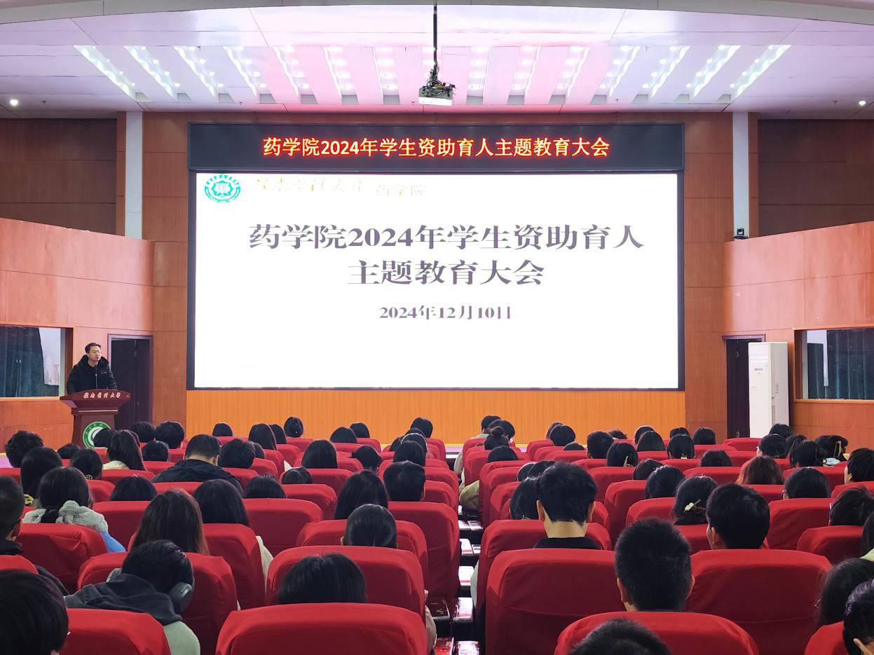 12月10日晚,药学院在黄金校区召开2024年学生资助育人主题教育大会,全体获奖受助学生380余人参加。