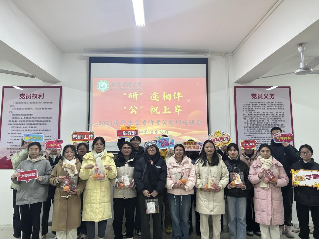 为帮助考研考公学子增强备考信心,进一步做好考前心理压力调适工作,12月16日晚,药学院在学生宿舍五六栋党员活动室举行2025届毕业生考研考公慰问座谈会,学工办辅导员及20余名考研考公学生代表参加。