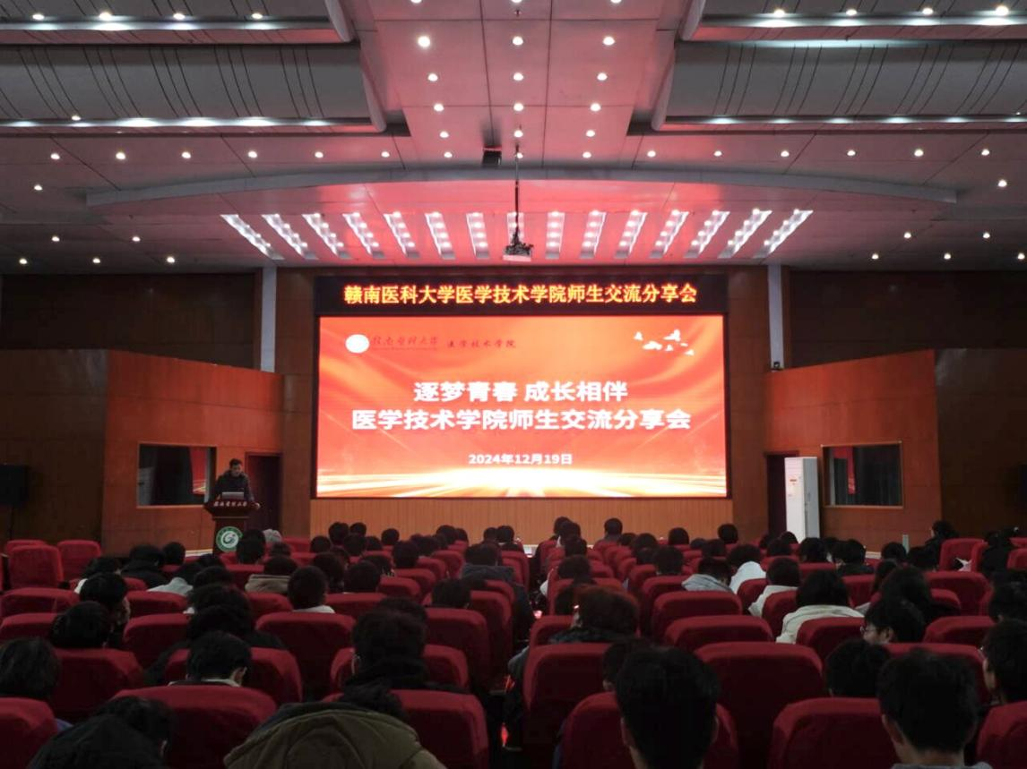 12月19日晚,医学技术学院在黄金校区举办“逐梦青春 成长相伴”师生交流分享会。医学技术学院党委副书记鲁陈、教师代表、全体辅导员及学生代表共计300余人参加。