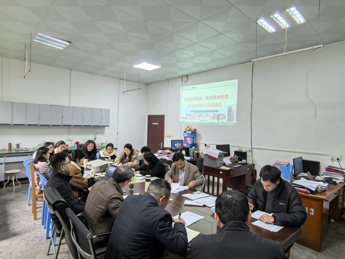 1 月 9 日,全科医学院在章贡校区召开新一轮本科教育教学审核评估工作启动会暨期末教学工作例会,该院领导班子成员及全体教师参加。会议由学院党委副书记、院长黄光生主持。