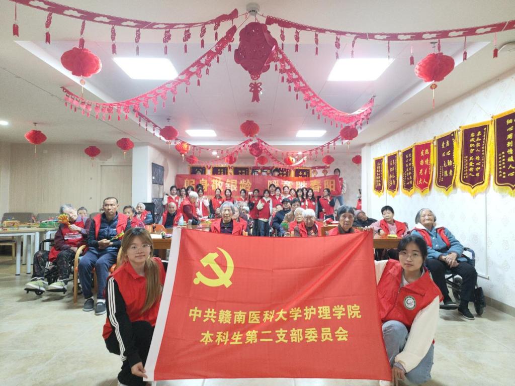 4月13日,护理学院学生第二党支部在赣州市三康庙养护院开展关爱老年人活动。此次活动旨在弘扬中华民族尊老敬老的传统美德,增强大学生社会责任感。
