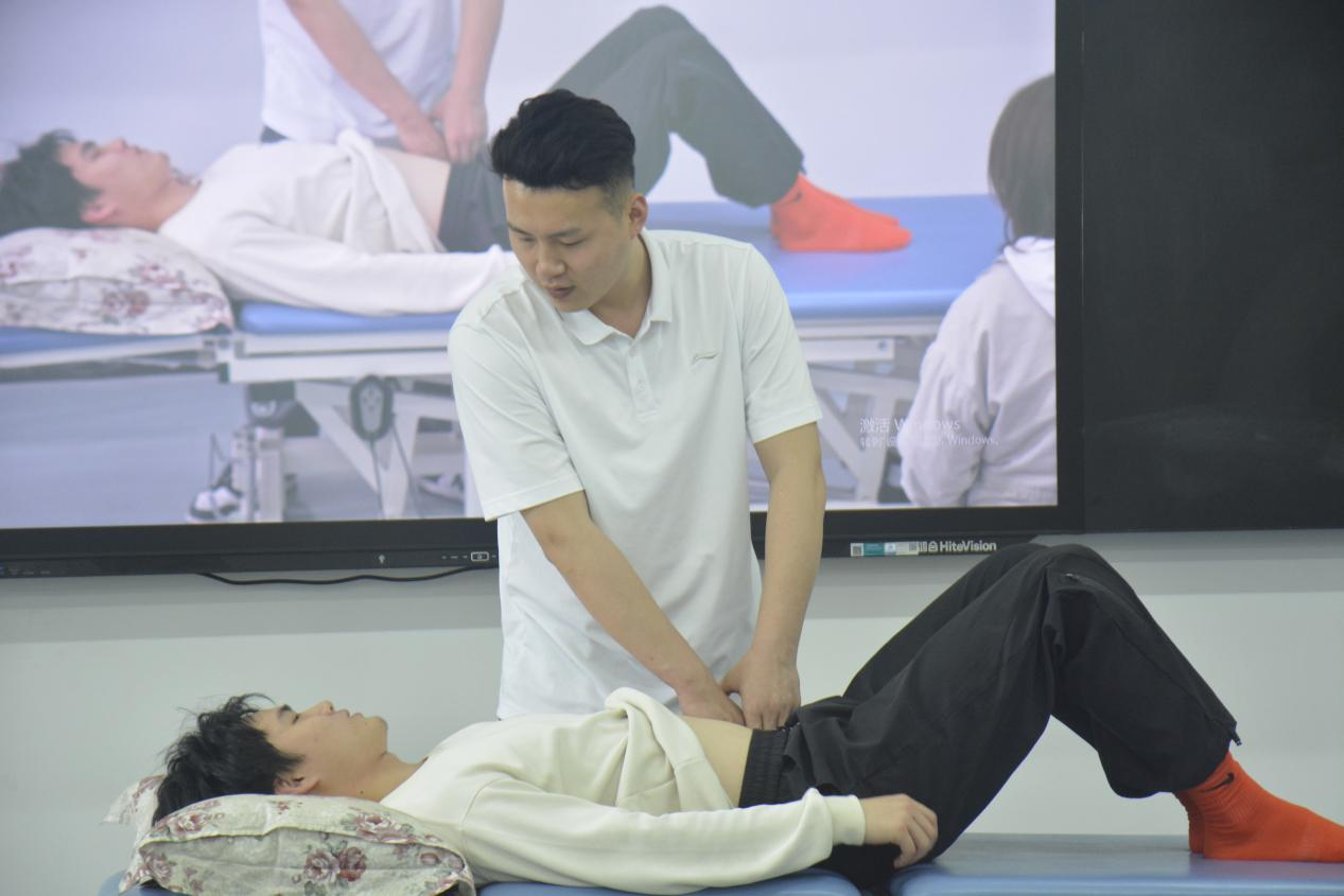 讲座采用“理论+模拟+实操”三阶教学模式。张磊通过动态骨盆模型系统阐释了骨盆生物力学机制、产后常见功能障碍评估方法,将理论转化为可视化操作。学生分组练习体位调整、诊断评估及施力技巧,同步提升理论与实践能力。真实病例诊疗环节中,张磊现场实施骨盆矫正,患者症状即时改善,直观展现技术临床价值,令师生深受震撼。
