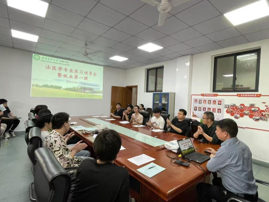 5月30日下午,基础医学院在章贡校区组织召开2021级法医学专业实习动员大会暨就业第一课。学院党委副书记刘志春,司法鉴定研究所所长、法医学专业负责人汪家文,法医学专业教师代表及2021级法医班全体学生参加会议。会议由汪家文主持。