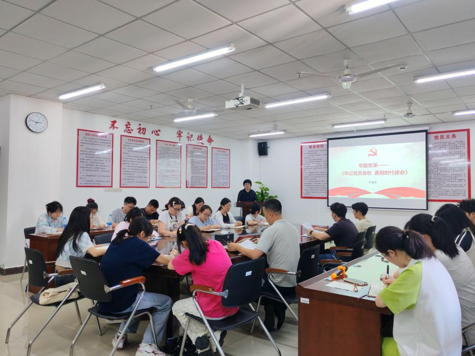随后,罗丽萍为毕业生党员发放了政治生日贺卡,并以《牢记党员身份 勇担时代使命》为题给毕业生党员上“最后一堂党课”。她从坚守初心使命、展现青年担当,常怀敬畏之心、追求廉洁自律,厚植爱国情怀、融入时代洪流三个方面讲授专题党课,教育引导全体毕业生党员做文明离校的表率,在今后的工作生活中始终牢记自己的党员身份和使命,做到明底线、知敬畏、尽职责、遵纪律,继续发挥好党员的先锋模范作用,以实际行动为党旗增辉,为母校添彩。