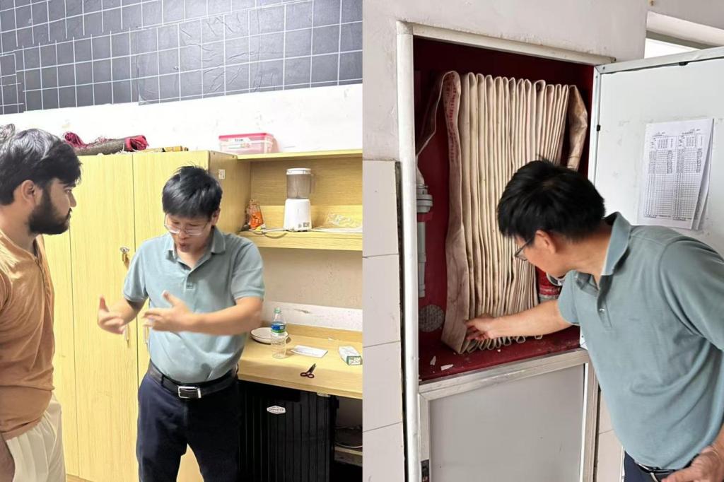 7月13日,为加强暑期留校来华留学生安全管理,度过一个安全和谐的假期,国际教育学院副院长钟富有带领学院教师对留学生宿舍开展了安全隐患排查及卫生检查工作。
