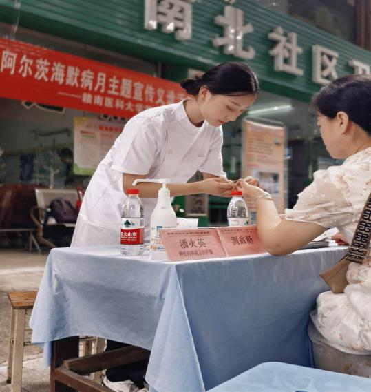 9月21日,护理学院组织研究生志愿者参与在黄金岭街道南北社区卫生服务站开展的2025世界阿尔茨海默病日义诊活动。