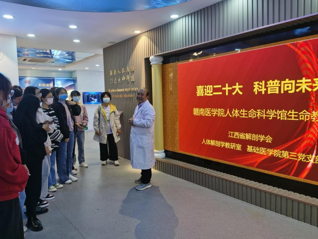 注重“第二课堂”,充分发挥展馆育人作用。为普及生命健康知识,助力健康中国发展战略,学院搭建了赣南医科大学人体生命科学馆这个平台。建立了师生共同组成的志愿者管理组织和专业科普讲解员队伍,让大学生在志愿服务中传承红医文化、锤炼为人民服务的情怀。2014年以来连续举办了德技杯“医生艺事”人体解剖学绘画大赛,收到412件作品,其中优秀作品171件,比赛得到《人民日报》、新浪网、新华网等官方微博以及江西卫视等媒体广泛报道。人体生命科学馆作为健康科普教育基地,免费面向社会公众开放,打开无形的围墙,与社会共享学校校园资源,服务社会,医教结合,普及人体科学和疾病防治知识,致力于促进医学教育和全民健康。开馆以来,先后接待了省部级、市级领导、院士等重量级人物,对外接待了机关企事业单位、大中小学学生百余批次,参观人数达5万余人次,取得了良好社会反响。人体生命科学馆先后获批为江西省少先队校外实践教育基地、赣州市中小学示范性综合实践活动校外基地,获得江西省大中小幼劳动教育典型案例二等奖。