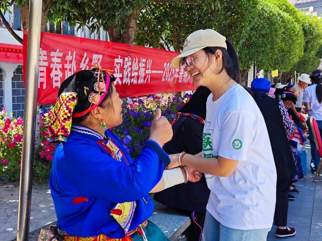 医为事业:践红医使命,筑健康团结之桥。实践队将红医精神化作实际行动,为小金县群众送去健康关怀。在小金县会师广场,队员们设立血压、血糖测量点,开展心肺复苏术及包扎教学,发放日常急救包。他们耐心地讲解健康知识,传授急救技能,努力提高群众自我保护能力。在崇德乡海坪村活动中心,队员们普及高血压、包虫病等常见病预防知识,增强村民健康意识。在崇德乡卫生院,队员们协助开展全民体检,助力阿坝州“石榴籽”工程健康保障行动。通过发挥自身医学特长,队员们以健康服务促进民族间交流交融,夯实团结根基。