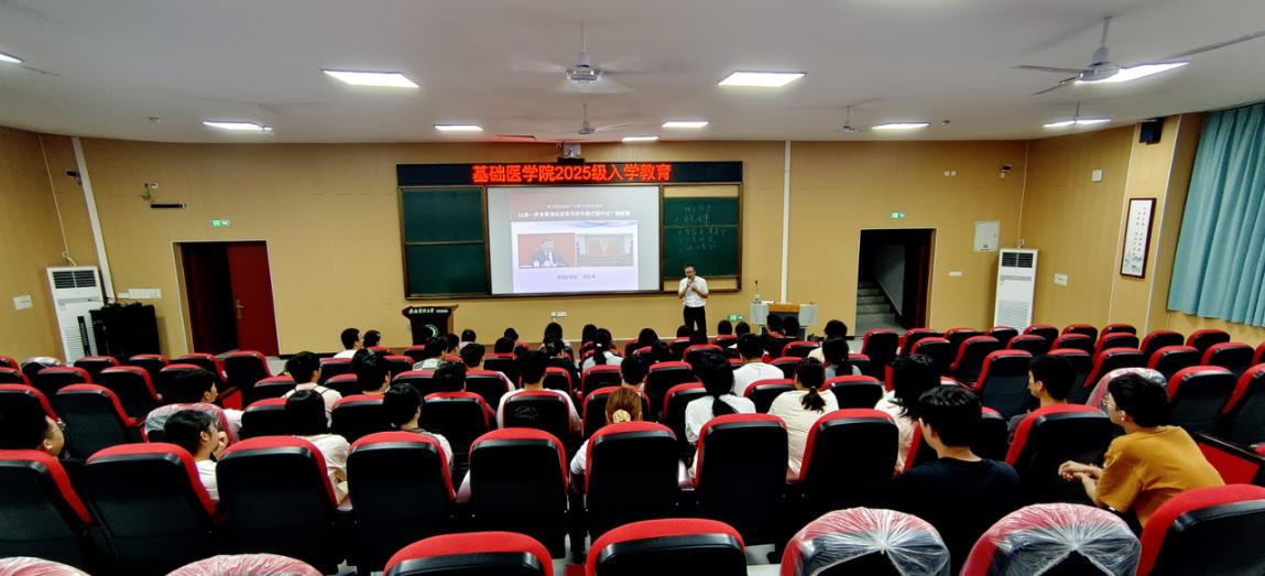 为教育引导入党申请人提高思想觉悟、端正入党动机,9月23日,基础医学院分党校在龙南校区开展2025级新生入党申请人“开课第一讲”,本次讲座由基础医学院党委副书记刘志春主讲。