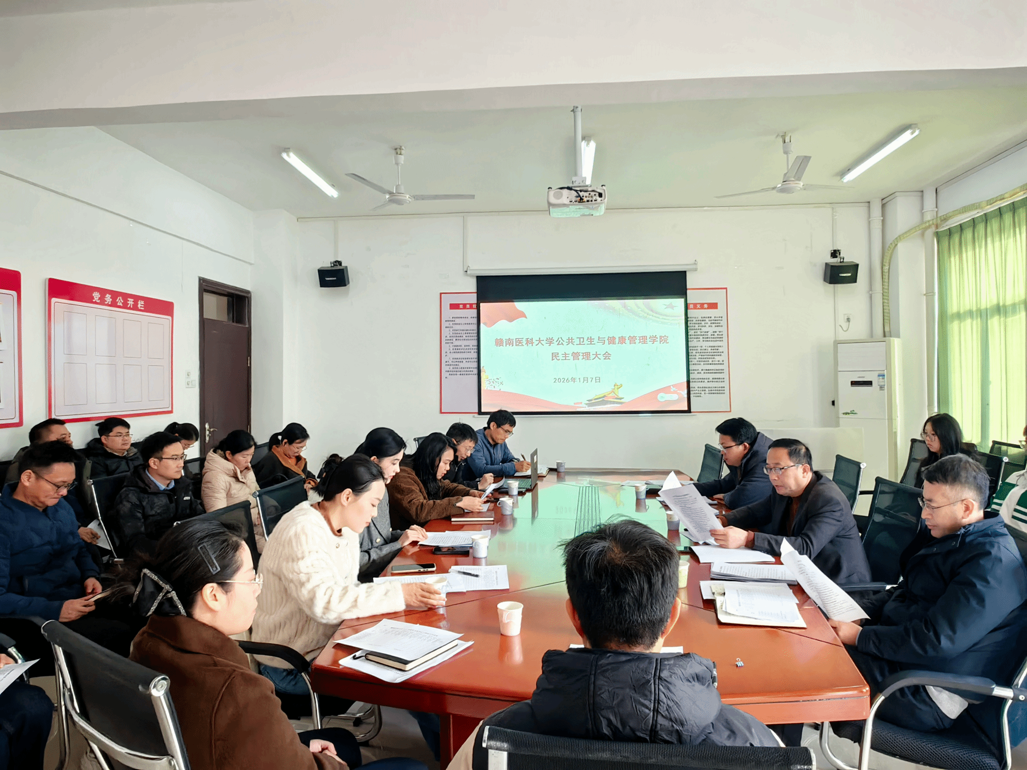 1月7日上午,公共卫生与健康管理学院2025年度民主管理大会第一届第三次会议在蓉江校区举行,学院领导班子及全体教职工参加会议。