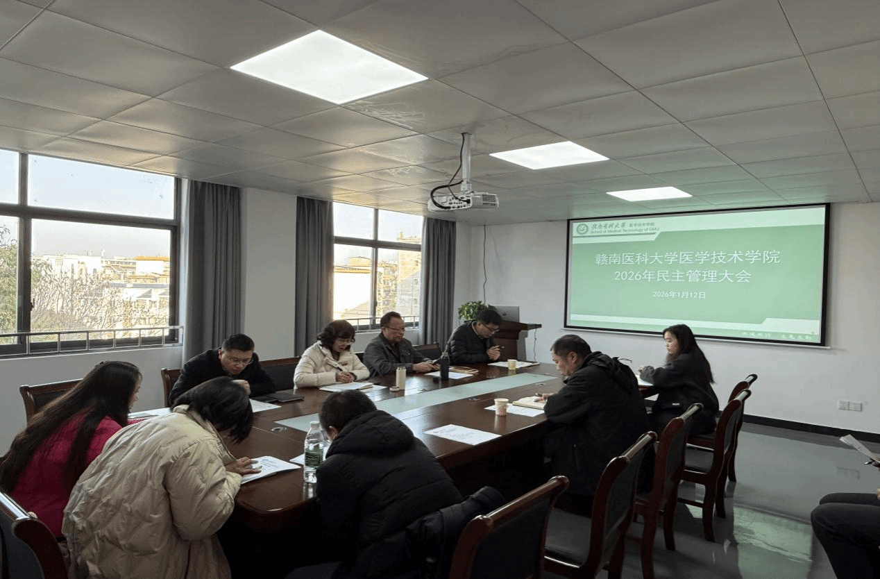 1月12日,医学技术学院民主管理大会在章贡校区召开,学院领导班子及全体教职工参加会议。