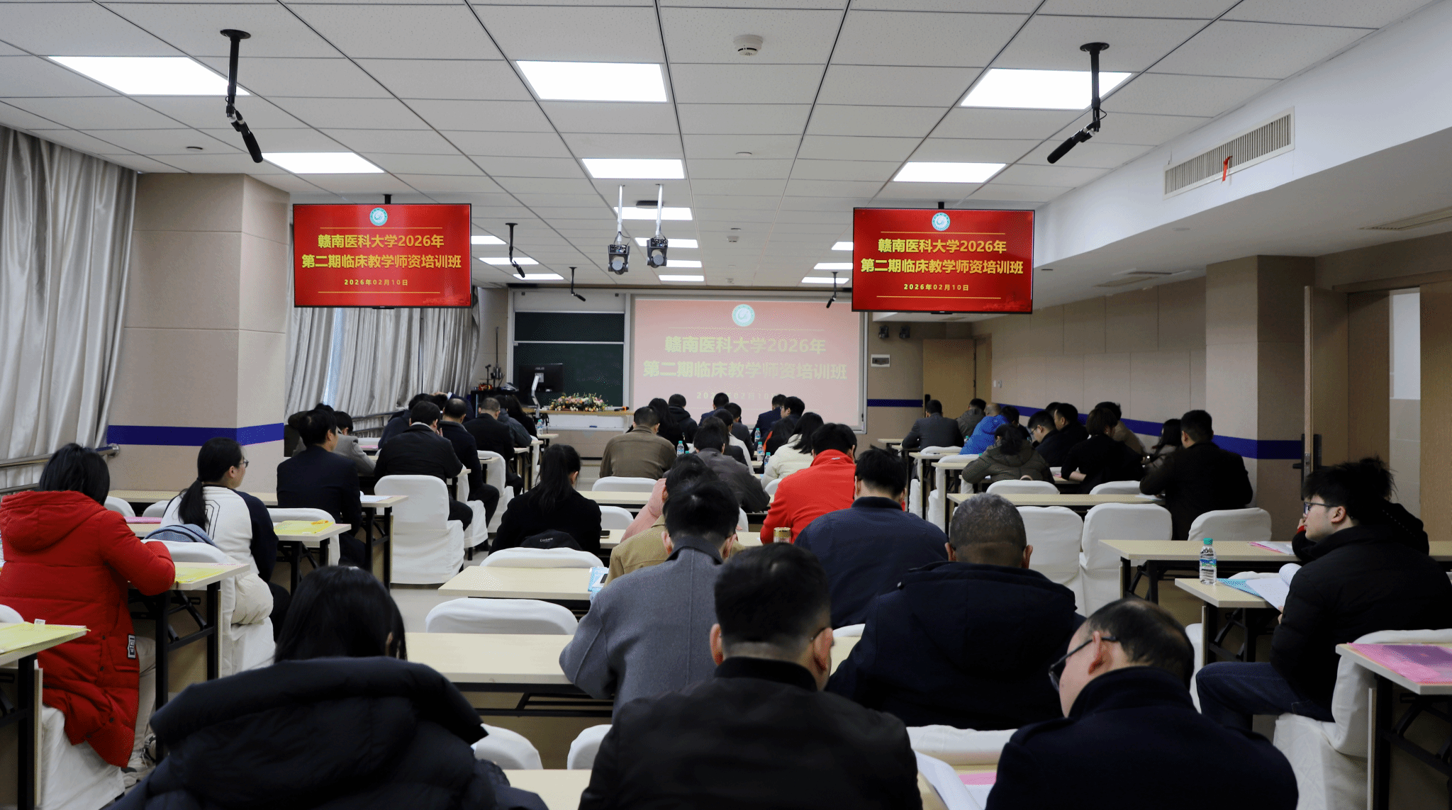 2月10日,在第一附属医院黄金院区举办2026年第二期临床教学师资培训班,培训赣州市南康区第一人民医院临床教师96人。