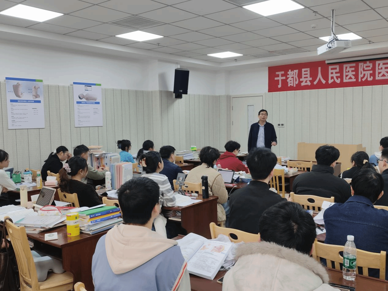 在附属景德镇医院,黄光生结合全科医学专业特色,详细解读了基层医疗、公立医院、民营医疗机构等不同就业方向的优势与发展前景。针对考研上线的同学,他重点围绕考研复试流程、专业知识备考、面试技巧等方面进行了细致指导。他提醒同学们要提前了解目标院校的复试要求,扎实巩固专业知识,注重提升临床实践能力与沟通能力,以饱满的精神状态迎接复试挑战。