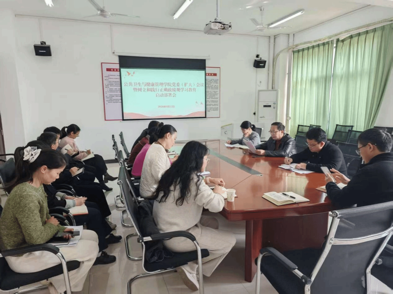 3月12日,公共卫生与健康管理学院召开党委(扩大)会暨树立和践行正确政绩观学习教育启动部署会,学院党委书记邱伟主持,学院党政领导班子成员、各党支部书记、各科室负责人参加会议。