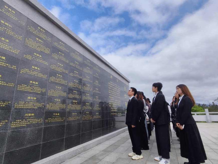 在庄严肃穆的革命烈士纪念碑前,全体师生整齐列队、神情凝重,集体肃立默哀,向为民族解放、国家独立和人民幸福献出宝贵生命的革命先烈,致以最崇高的敬意与最深切的悼念。随后,师生代表缓步上前,向烈士纪念碑敬献鲜花,并绕行瞻仰英烈名录墙,在静默中追思先烈事迹、感悟革命精神,表达对革命先辈的无限敬仰与深切缅怀。在英烈名录墙前,同学们认真聆听革命先烈的英勇事迹,凝视着墙上一个个镌刻的名字,深刻感悟赣南苏区革命先辈们为信仰抛头颅、洒热血的崇高气节。