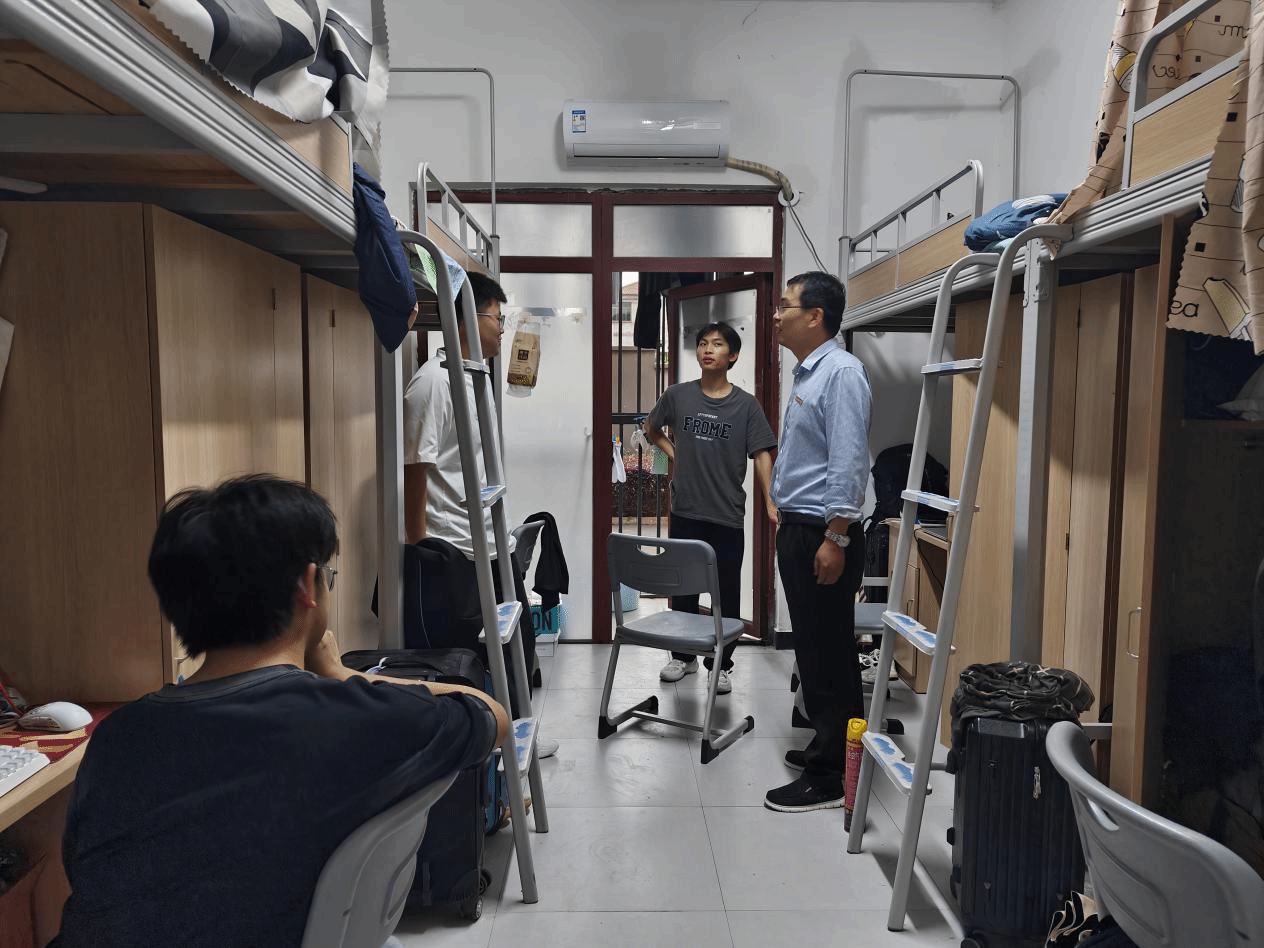座谈会上,学生代表结合自身学习生活实际,围绕课堂教学、校园文化、后勤服务等畅所欲言。朱锦认真倾听、逐一回应,现场协调相关部门加快解决急难愁盼问题。随后,他深入学生宿舍,仔细排查学生宿舍的安全隐患,与同学们亲切交流学习生活情况,叮嘱大家注意安全、劳逸结合,勉励同学们树立远大理想信念、勤学善思。