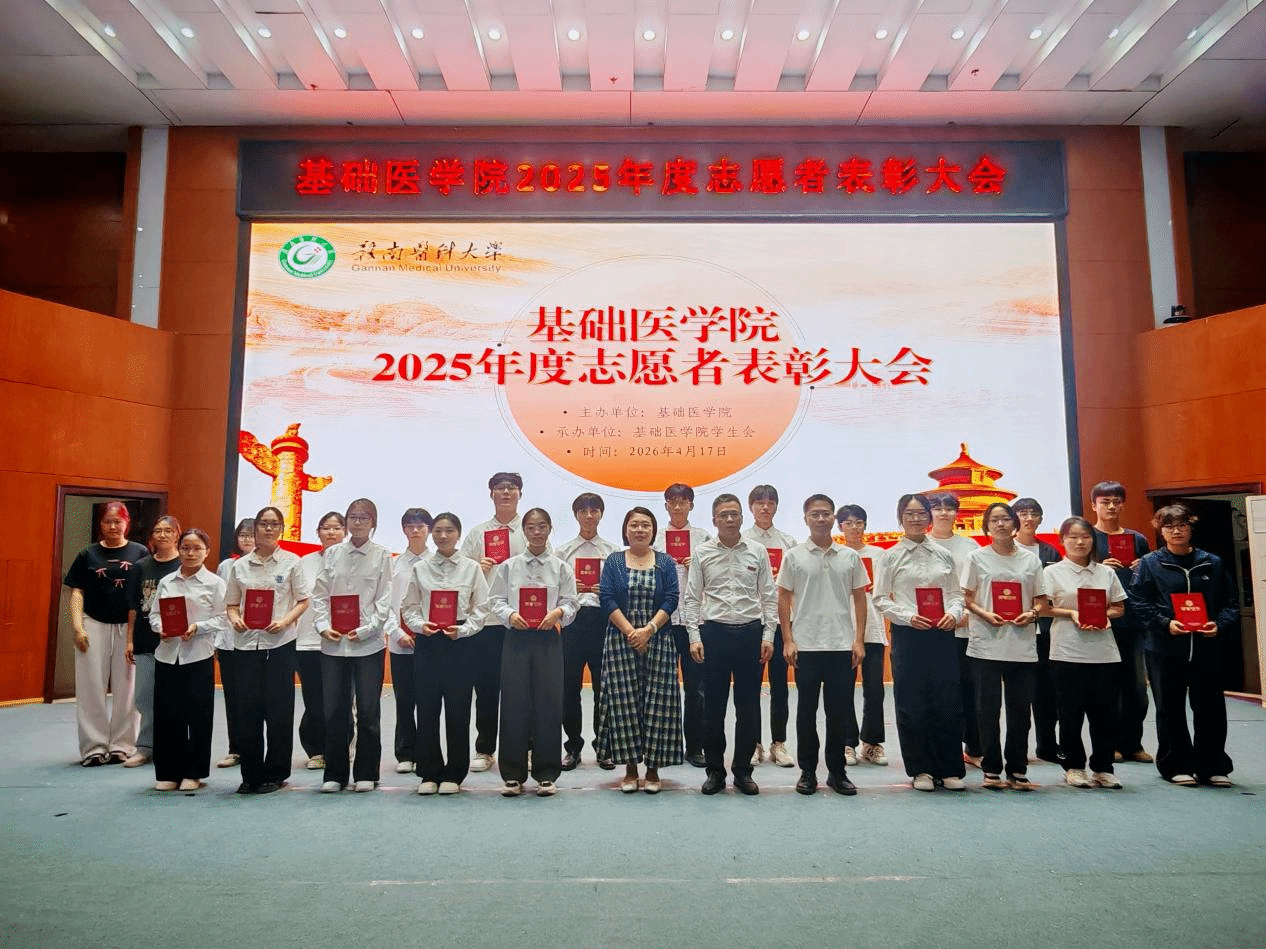 4月17日晚,基础医学院在蓉江校区举办2025年度优秀志愿者表彰大会。基础医学院党委副书记刘志春、学工办辅导员及各班学生代表共150余人参加大会。