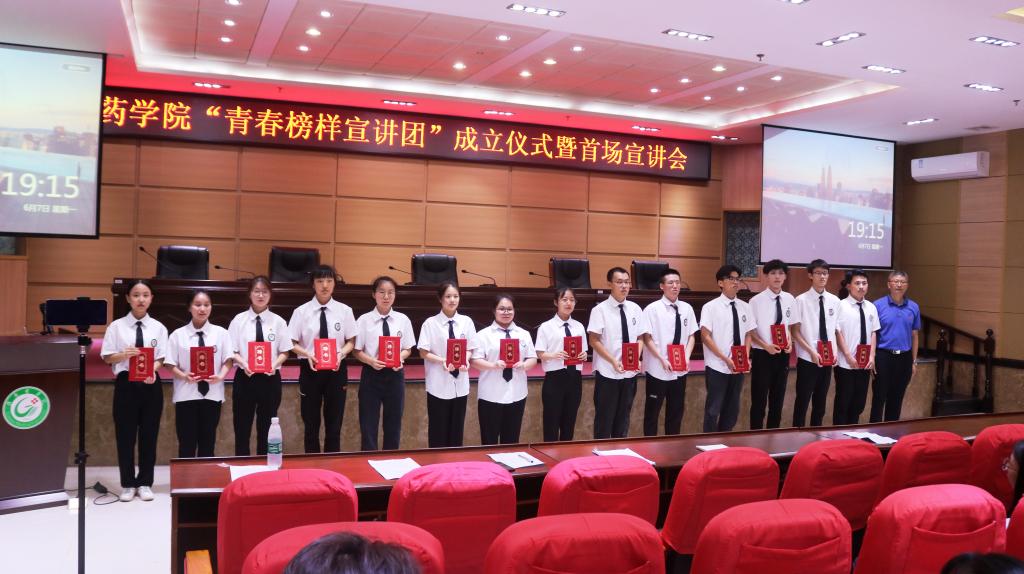 成立仪式上,宣读了《药学院关于成立“青年榜样宣讲团”的通知》,并向宣讲团14名成员颁发了聘书。