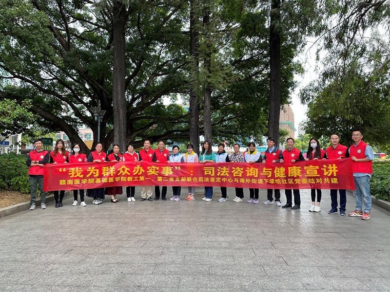 10月19日,基础医学院教工第一、第二党支部联合司法鉴定中心与章贡区南外街道下壕塘社区结对共建,共同开展“我为群众办实事”实践活动——司法咨询与健康宣讲。