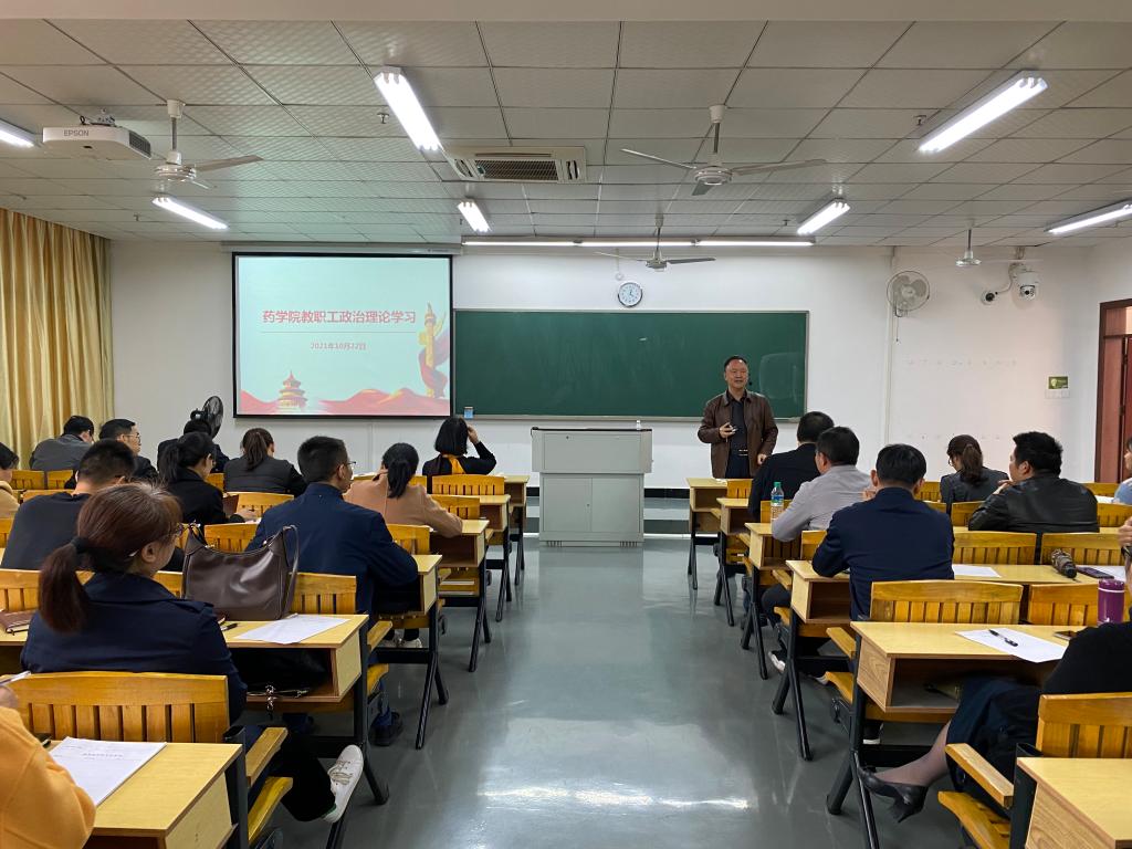 10月22日,药学院在黄金校区开展了教职工政治理论学习。药学院党委书记陈霖柏主持,全体教职工参加。