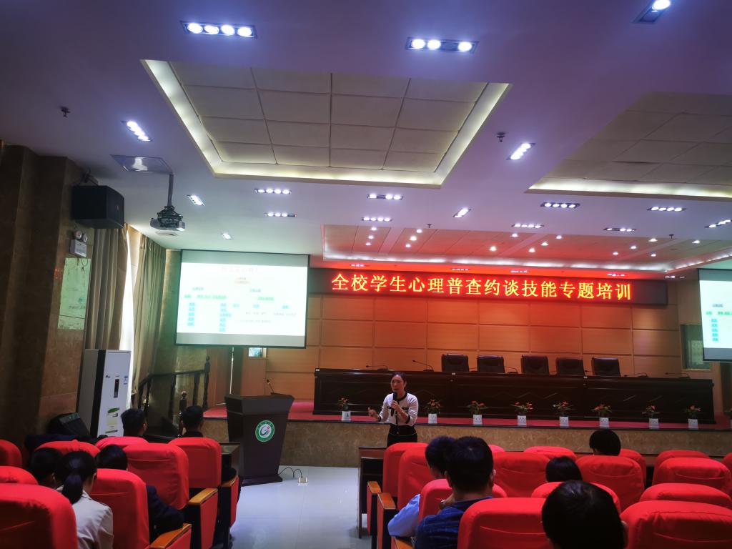 10月28日,校心理咨询中心刘小珍为全校班主任、辅导员等学生管理干部开展主题为“学生心理普查约谈技能”的培训。
