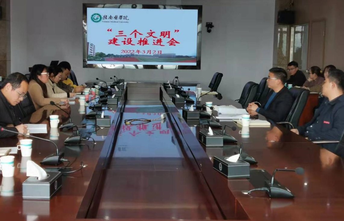 3月2日上午,学校召开“三个文明”建设推进会,学工处主持会议,全体学工干部参会。