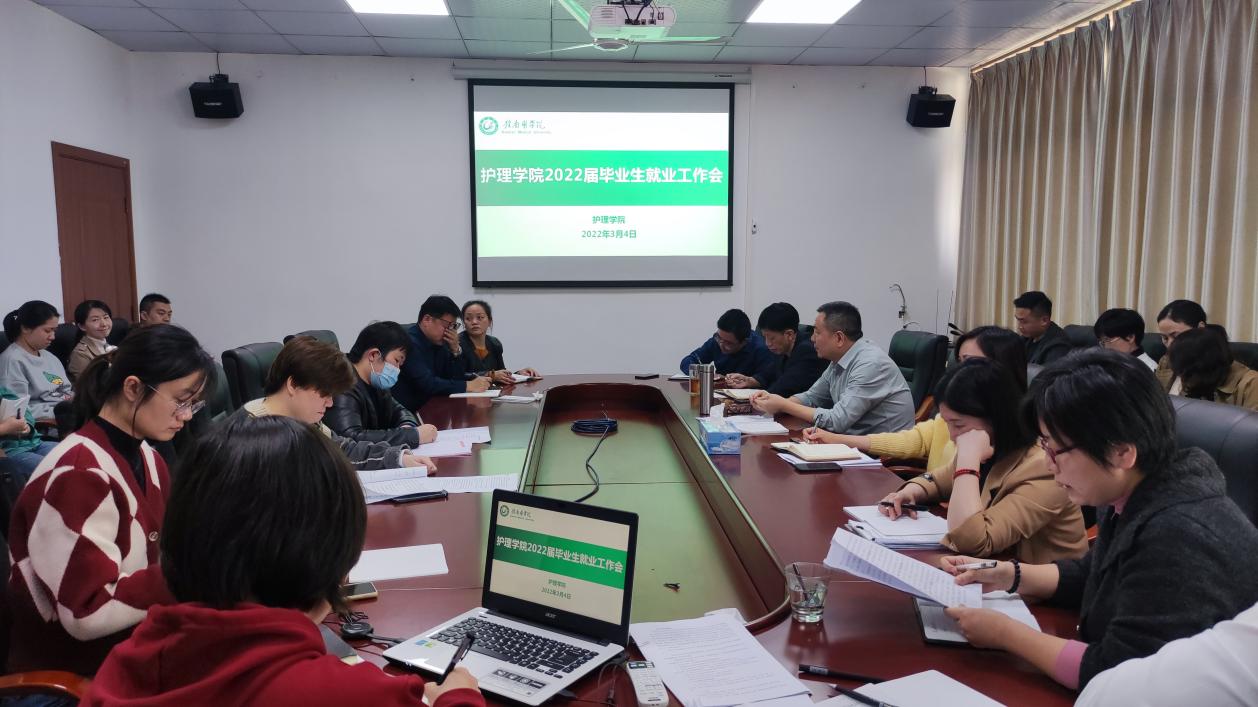 3月4日下午,护理学院召开2022届毕业生就业工作会,该院领导、辅导员和毕业班班主任参会。