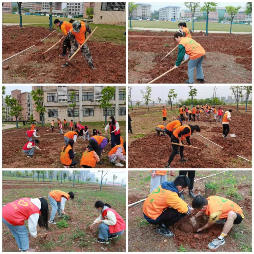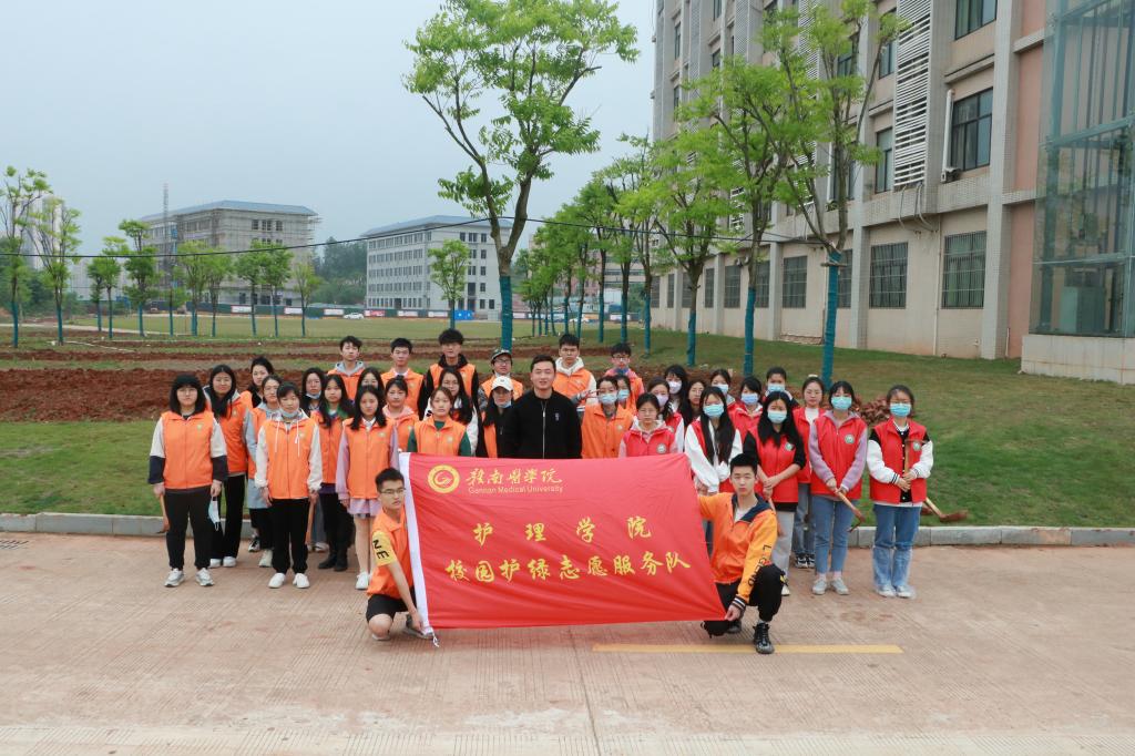 3月28日,护理学院在黄金校区第五实验楼旁组织开展劳动教育实践活动,该院30余名校园护绿志愿者参加。