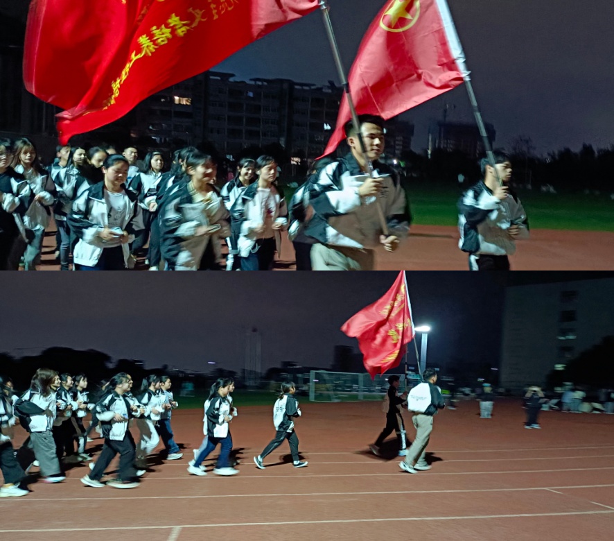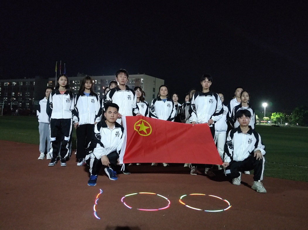 活动中,同学们腕戴荧光棒,分两列纵队环跑道慢跑,大家迈着整齐划一的步伐前进,涌动的人群在操场上形成了一道靓丽的风景线。随后,同学们别出心裁地摆出了数字“100”造型,为庆祝建团百年营造了良好氛围。